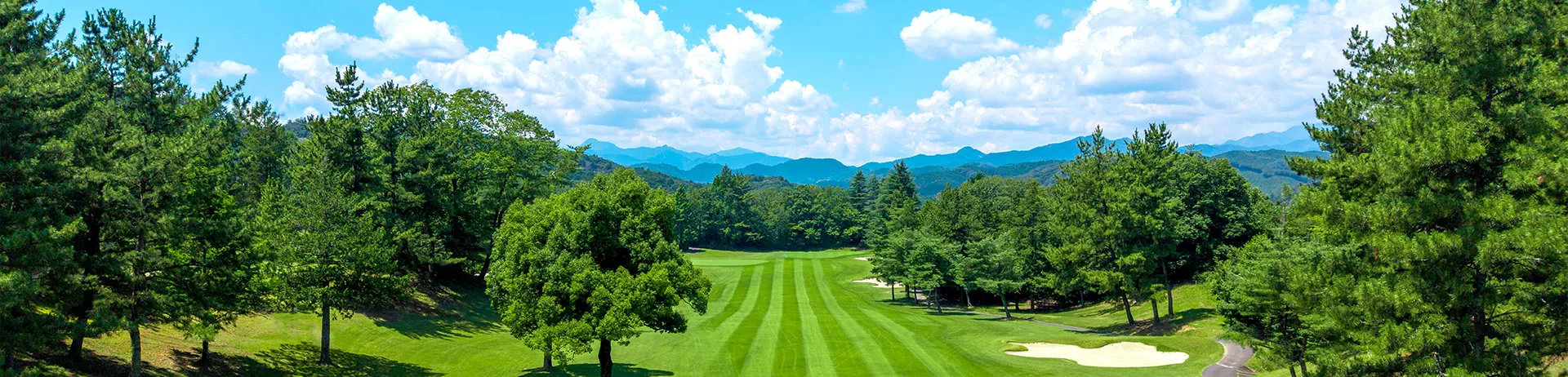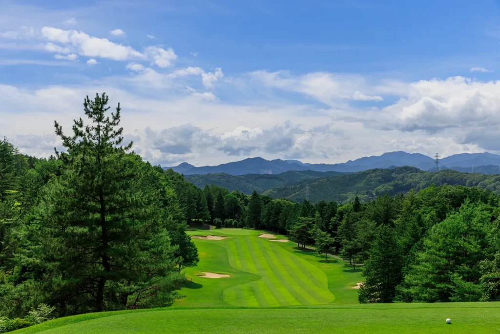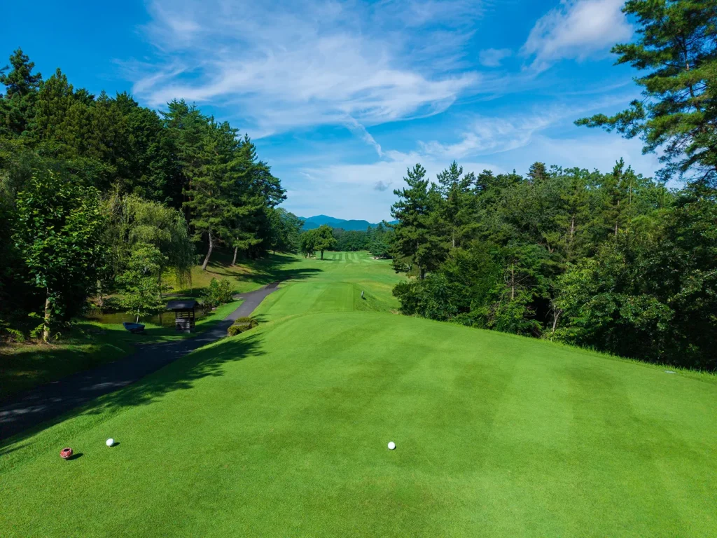 前方の山並みとフィットした景色が良く、距離の長いミドルホール。